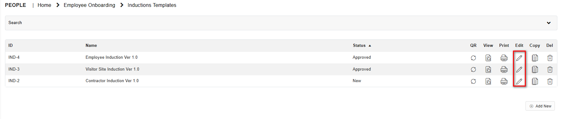 - Edit Details that were previously entered. For example, once the template is complete, the status can be changed from Draft to New.